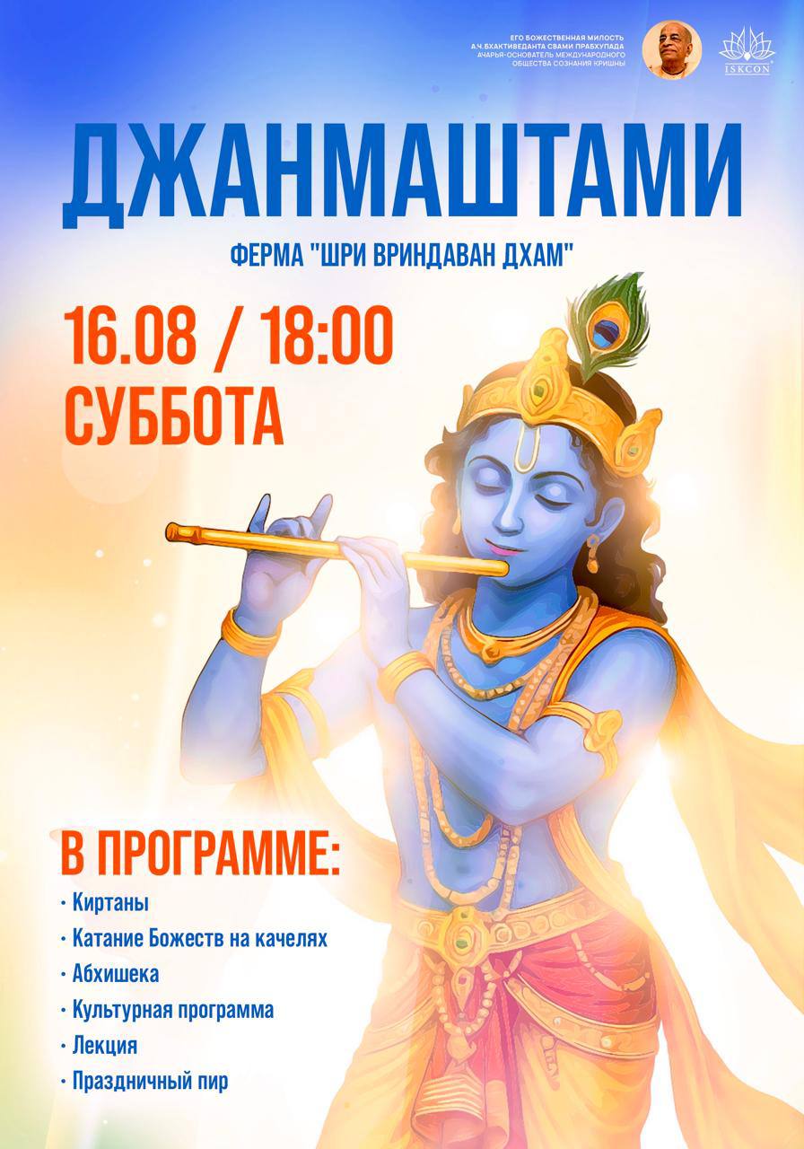 🎉 We joyfully invite you to the Sri Krishna Janmashtami celebration on August 16th at "Sri Vrindavan Dham" farm.